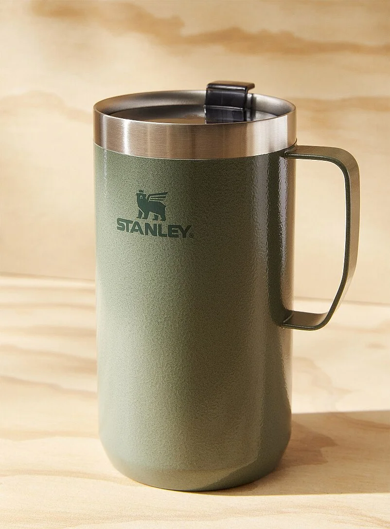 Above, the Stanley 24 oz camping mug is a larger take on the classic 12 oz mug, available in classic Stanley Green and tons of other colors too. Get yours here!