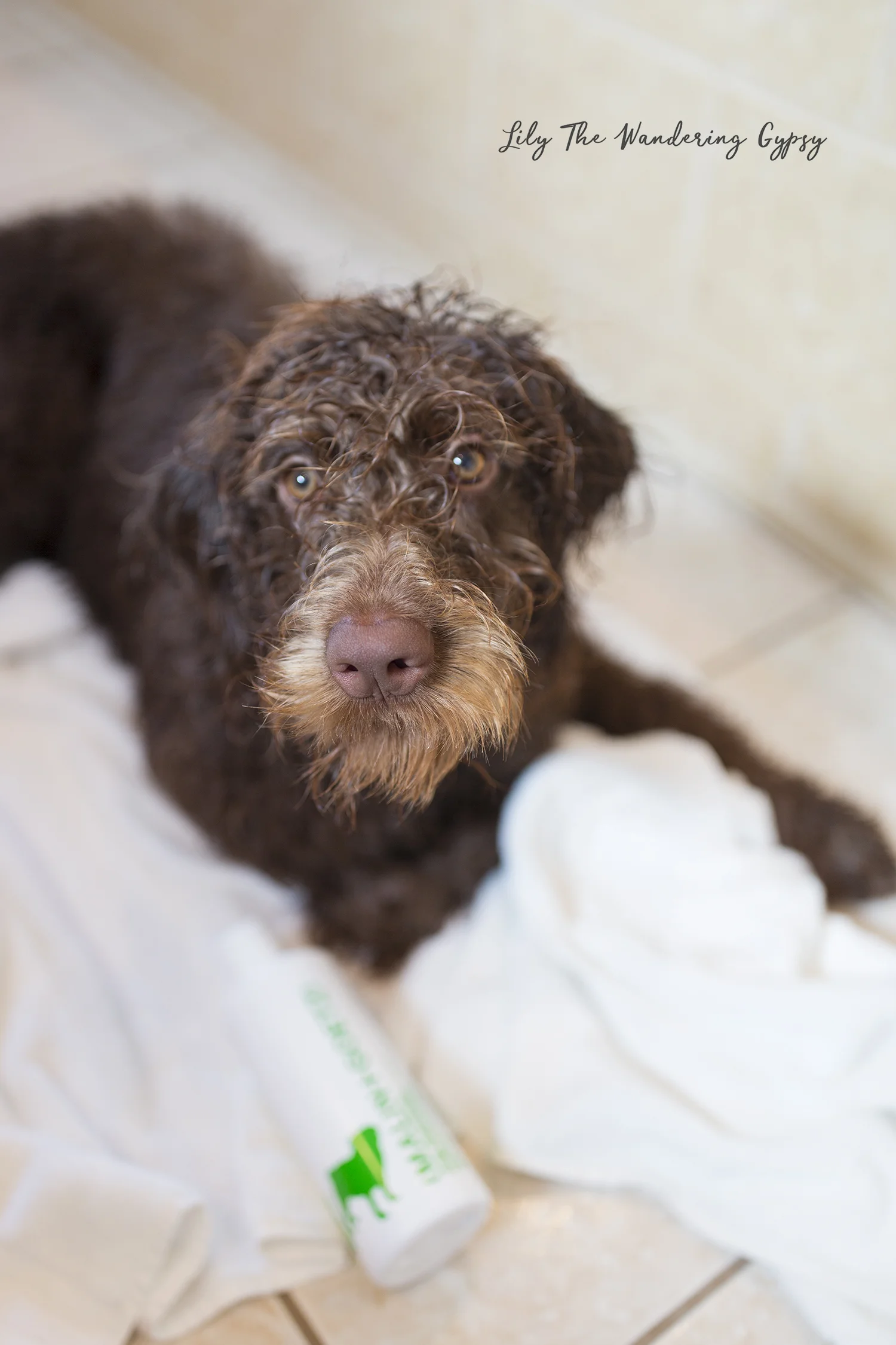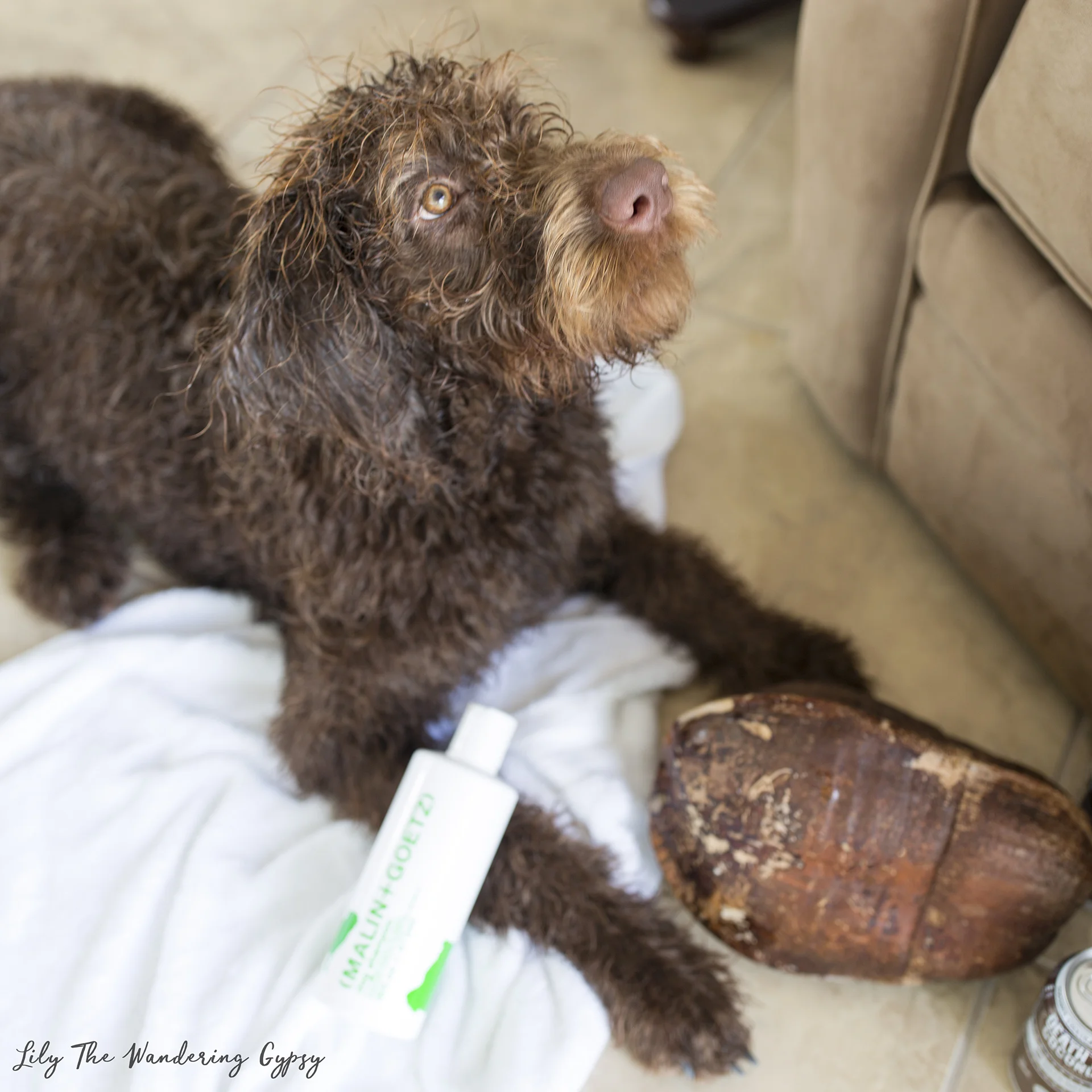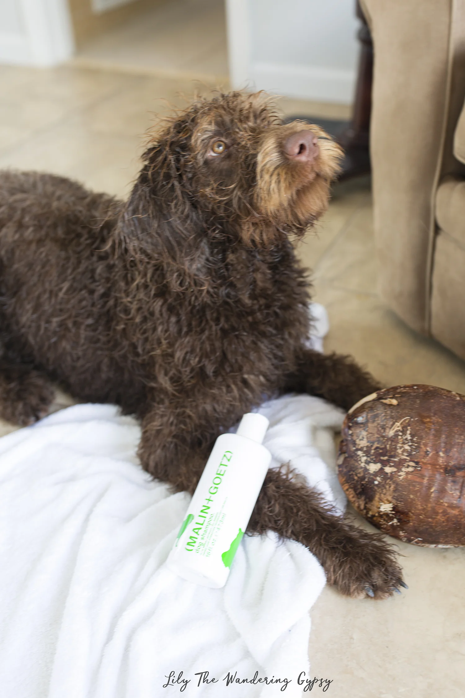 This shampoo is like doggy spa treatment you can do at home. I was gifted this incredible dog shampoo directly from MALIN + GOETZ (M+G), and could not be happier! Our 6 month old Chocolate Labradoodle has a super curly, wavy coat that tangles and mats very easily.