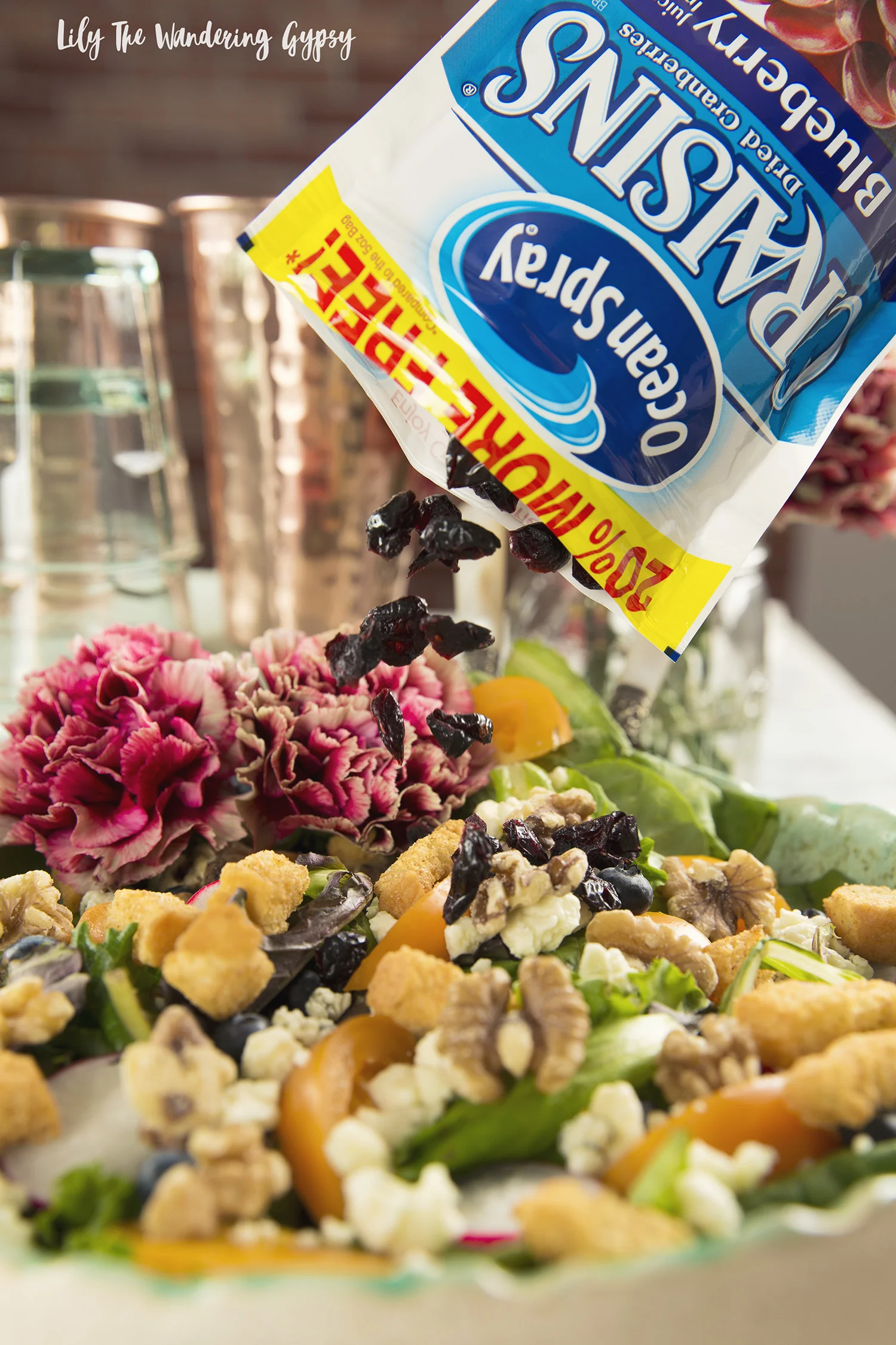 Above, the Ocean Spray® Craisins® Dried Cranberries Blueberry Juice Infused add SO much to the salad! Add your homemade organic salad dressing on top, and enjoy!