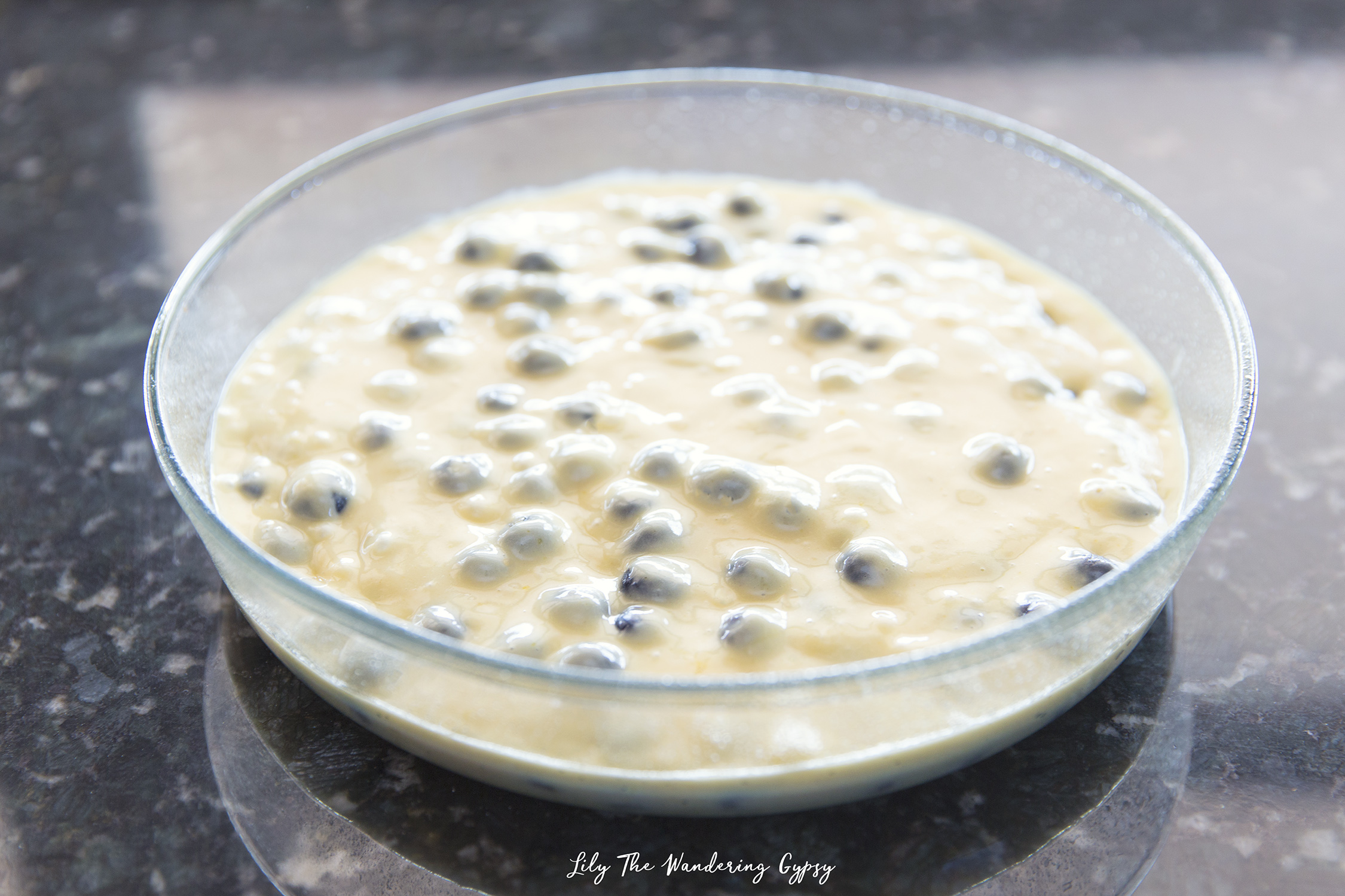 This batter tasted absolutely amazing! Yes, I licked the bowl after pouring what I could into the baking dish - I am not above doing that :) I also love the fact that this had absolutely NO fake blueberry taste, like a boxed blueberry muffin/bread mix, or those you buy from most grocery store bakeries. I always question those quite a bit...No fake ingredients here, folks!