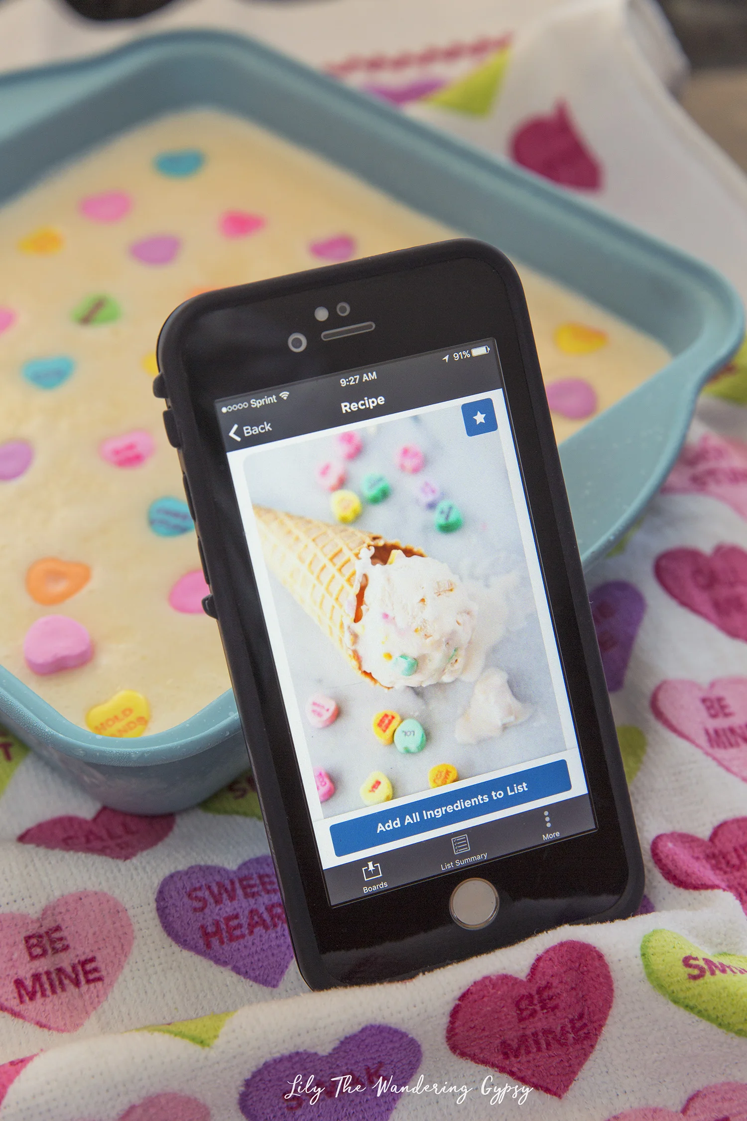 The Kroger app is also really nice and well thought out. Once your Kroger app loads, at the bottom, toggle over to the Lists Tab. This already has my Conversation Heart Ice Cream ingredients, RIGHT THERE, and it tells you what aisle it’s in - how great!!