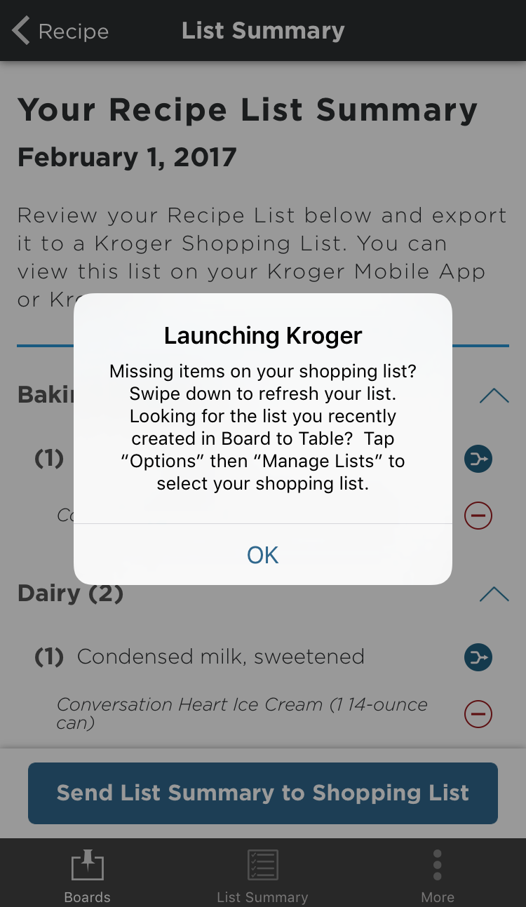 Simply open Board To Table, login to Pinterest in-app, and also login to your Kroger app.