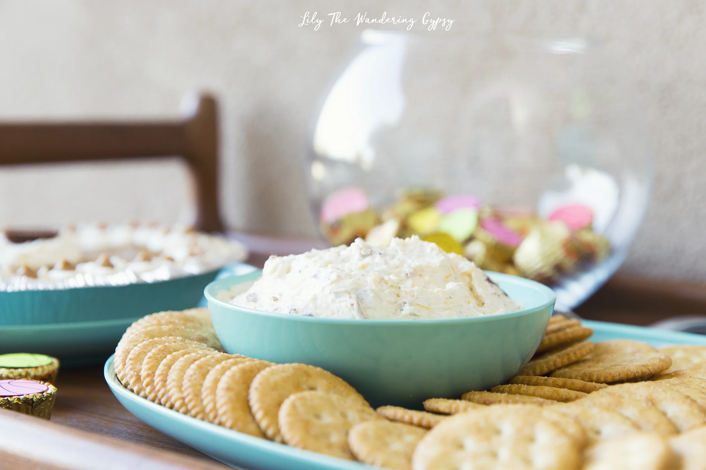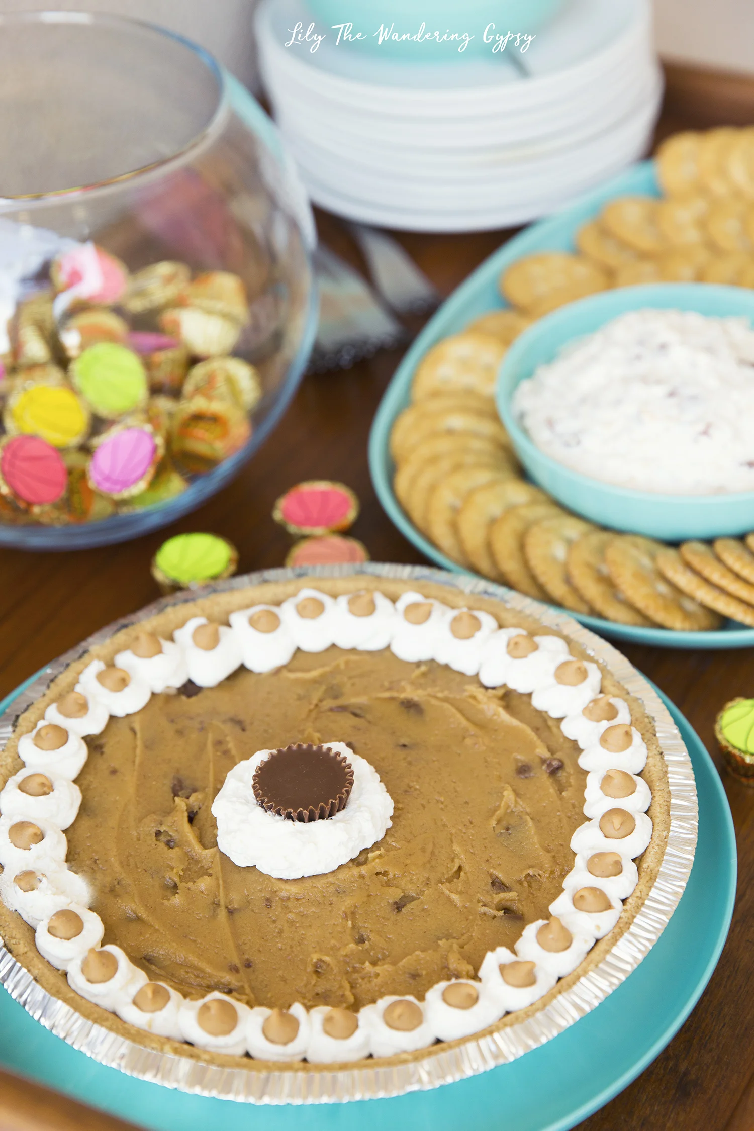 I made a No-Bake Peanut Butter Pie (which was so incredible), find the recipe in this post, here. I also made a delicious Bacon Ranch Cheddar Dip to serve with crackers.
