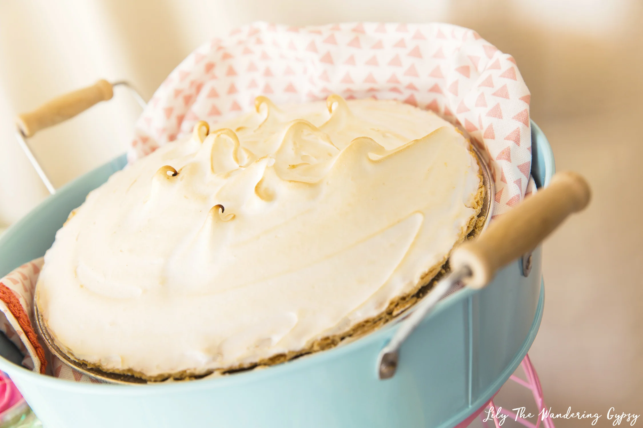 Another fun idea is to grab some adorable metal trays, place a cute tea towel inside, then place your pies in them to show them off before cutting!