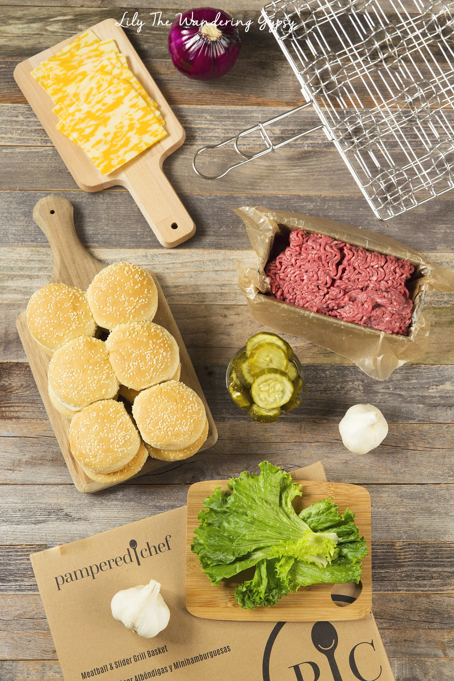 Temperatures are getting warmer outside, and I love the fact that we can grill again! I just love being able to cook outside, and I also love the smell of burgers and other food being grilled. Makes the neighborhood smell amazing! These Slider Burgers turned out super well, and I made them with the help of a new tool! The Pampered Chef Meatball and Slider Grill Basket allowed me to make up to 12 Slider Burgers on the grill at once!