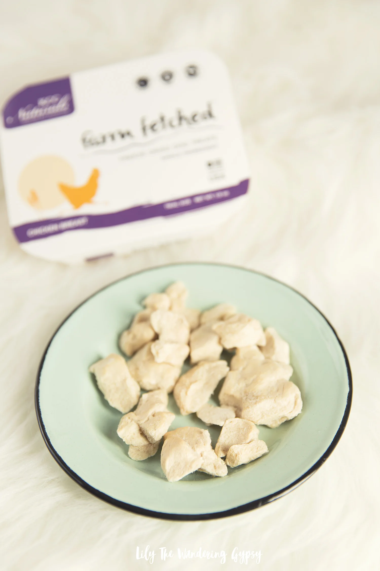 These chicken treats contain only ONE ingredient - chicken! Poor Cabbie only got one taste of these delicious treats while Porter ate the rest of them in only a few seconds. So, I guess they give these two paws up! These chicken treats have no smell upon opening them, which I love, and equate with a better treat-giving experience for us, and they still went crazy for them.