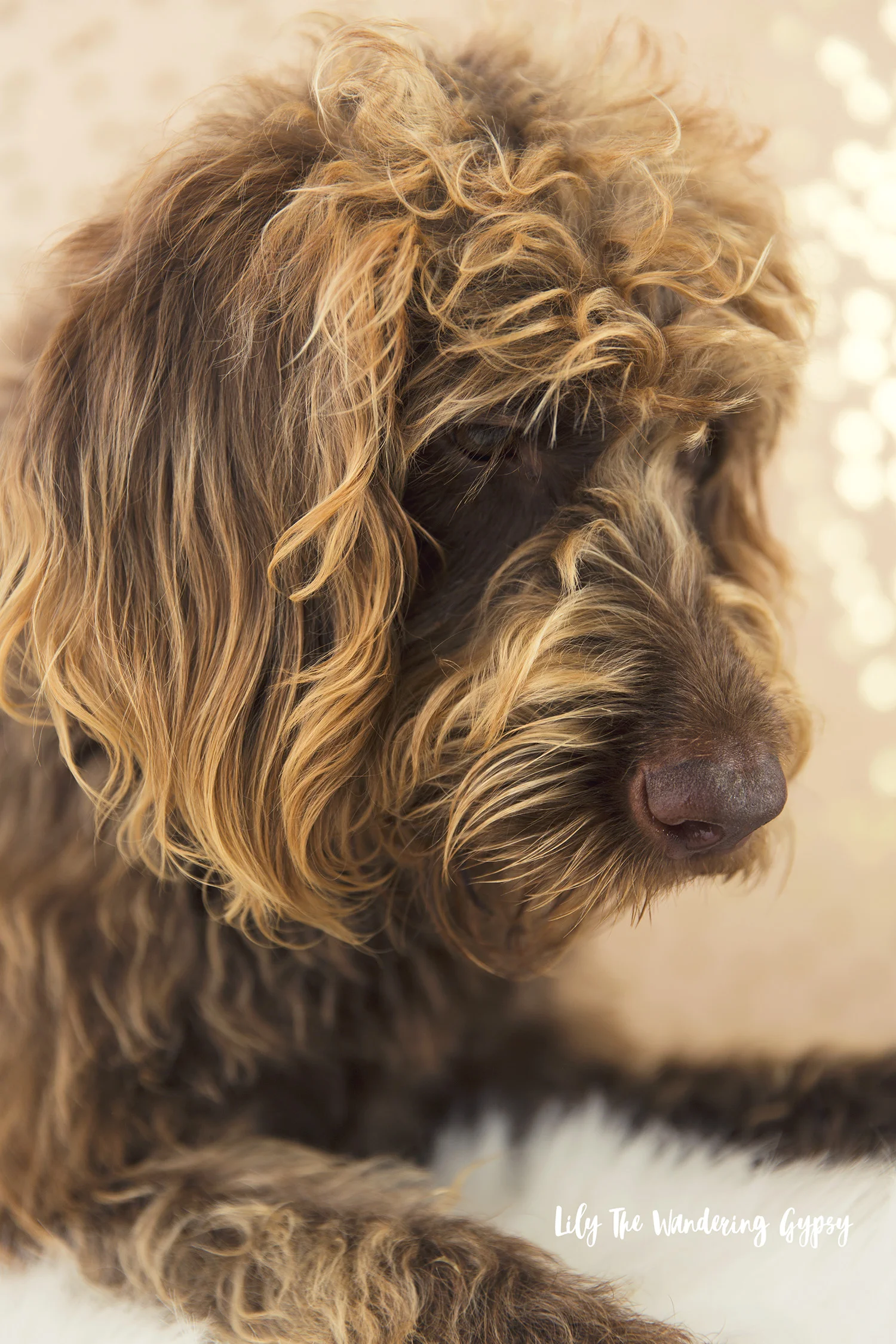 Cherrybrook, one of my Share-A-Sale affiliates, and a website that offers lots of wholesome and wonderful pet treats and toys, sent me these amazing, CC Natural Farms Freeze Dried Chicken Treats (and other goodies) to photograph and review. The dogs had a lot of fun helping me out with this project, and I gave one treat to each Cabbie and Porter. Cabbie is such a good girl, she would never steal a treat, even if it was right in front of her. Porter, on the other hand has no problem with it. I photographed everything, and left the room for less than a minute, and as soon as I realize I hadn't shut the door in the photo studio, I instantly ran back in to find the plate of treats undisturbed from its location, but completely empty. The doodle struck again! (This is not the first time she has gotten Cabbie's share of treats, let me assure you). Below, you can see her plotting to eat all of the treats...