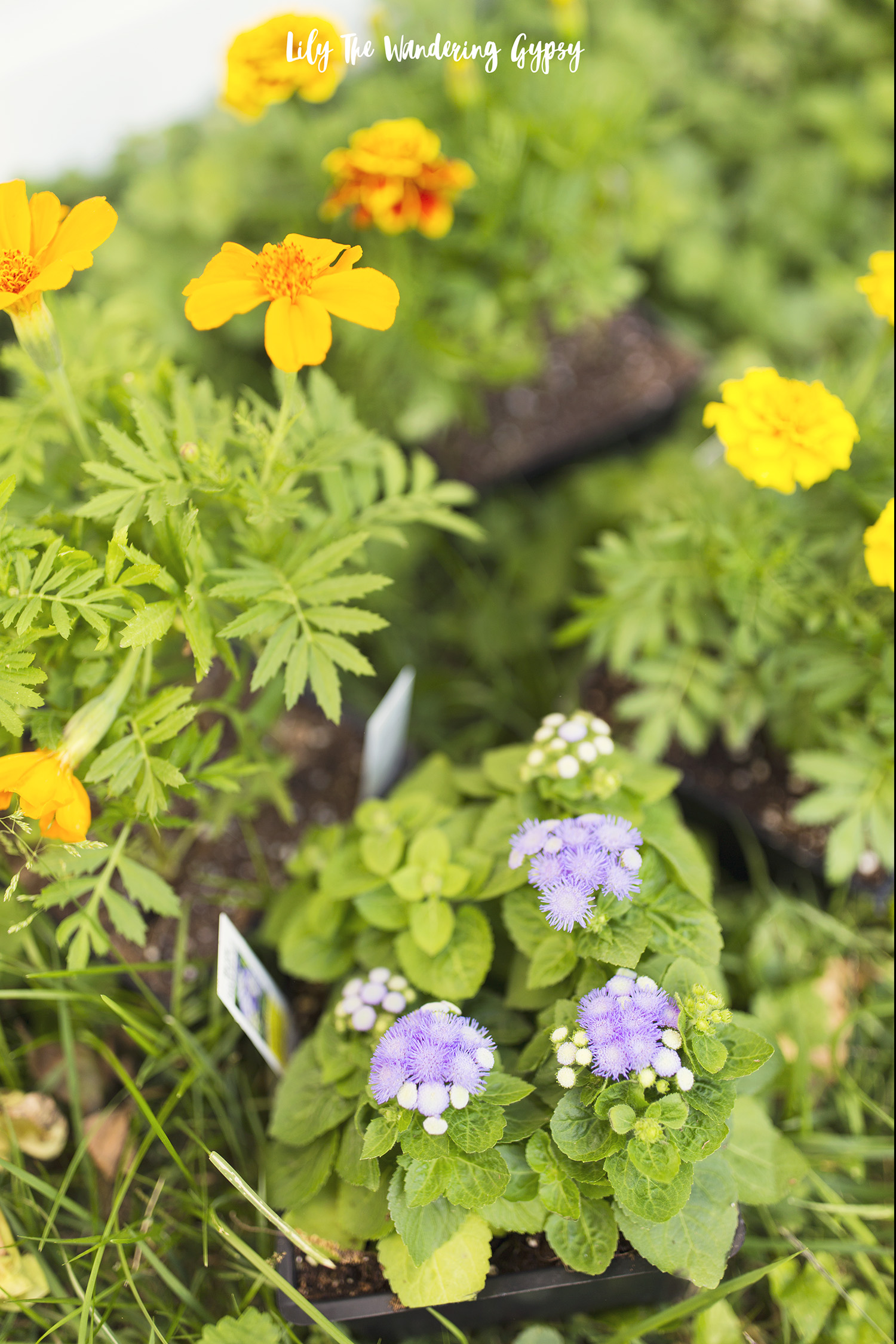 Below, I shot this one at the checkout counter, and love my plants so much! Everything seems to be happy so far except for my Dahlias, shown in light pin. I;m giving them some more time, but I may have them in the wrong growing conditions. My marigolds and Purple Hawaii 2.0 look great!!