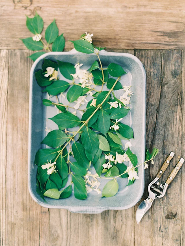 Try these Honeysuckle Cordial Biscuits with Sea Salt Peach Butter and Honeysuckle Mint Vinaigrette by Beth Kirby of Local Milk.
