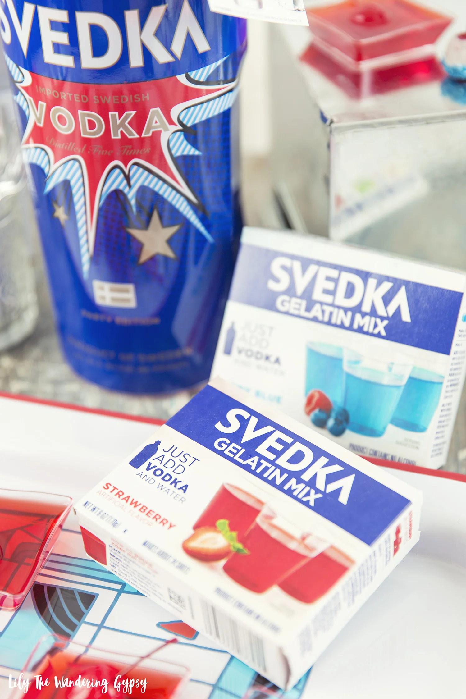 - 1 Package of red gelatin (I used the SVEDKA brand red strawberry).