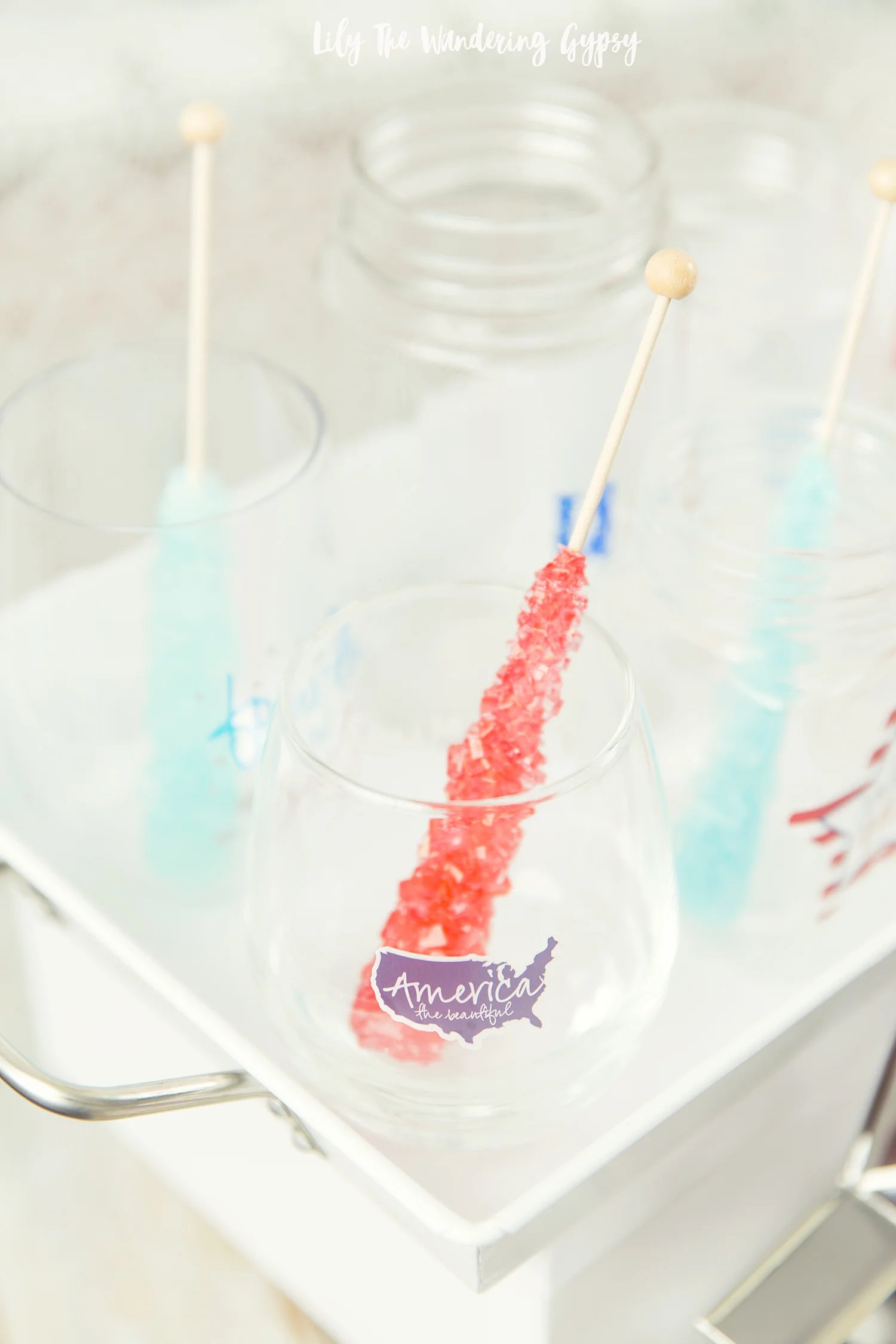 3.) To see the color-changing magic, stir your blue drink with a red rock candy stick, and instantly see the color begin to change to a purple! It's so delicious!!!