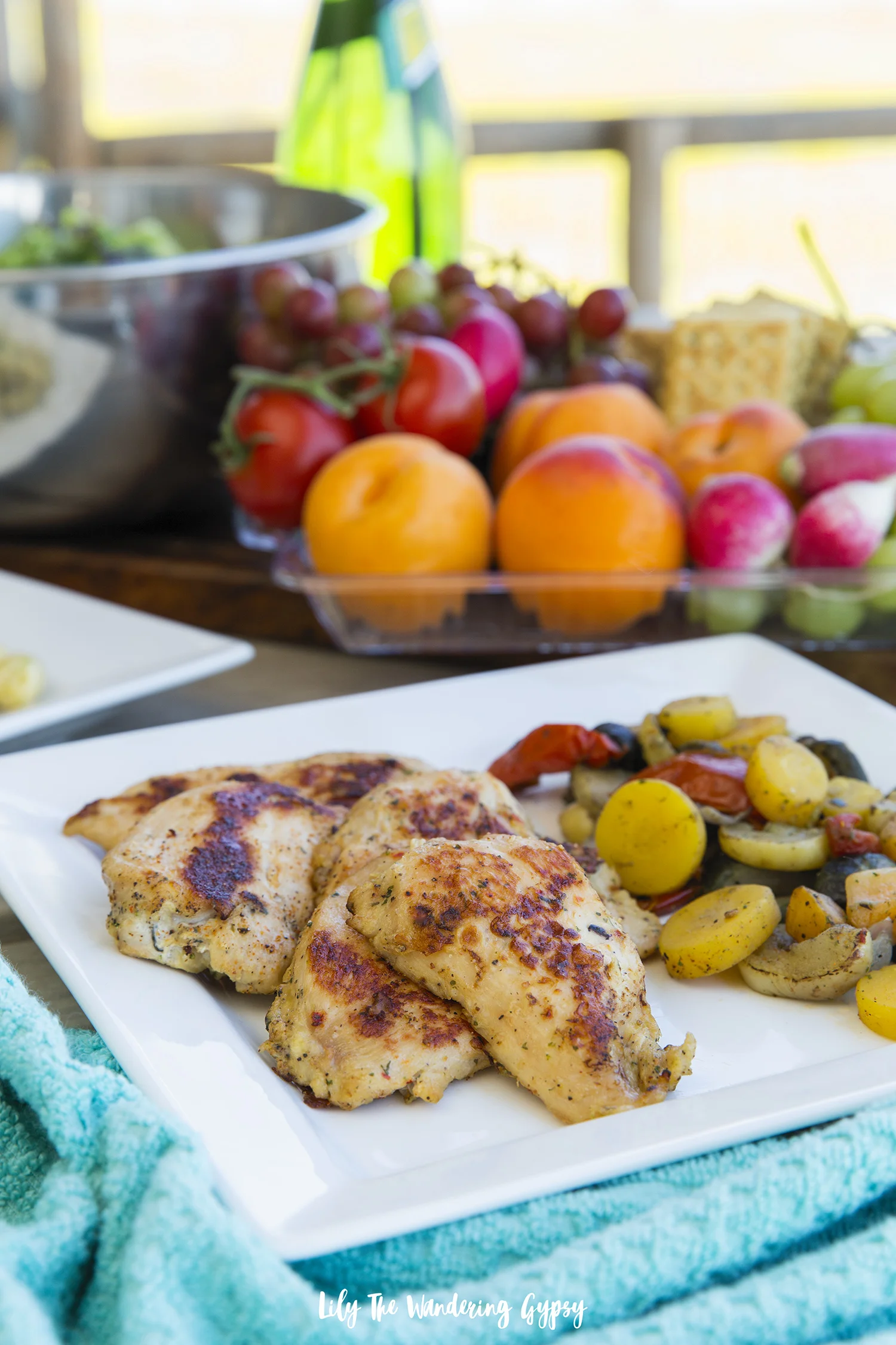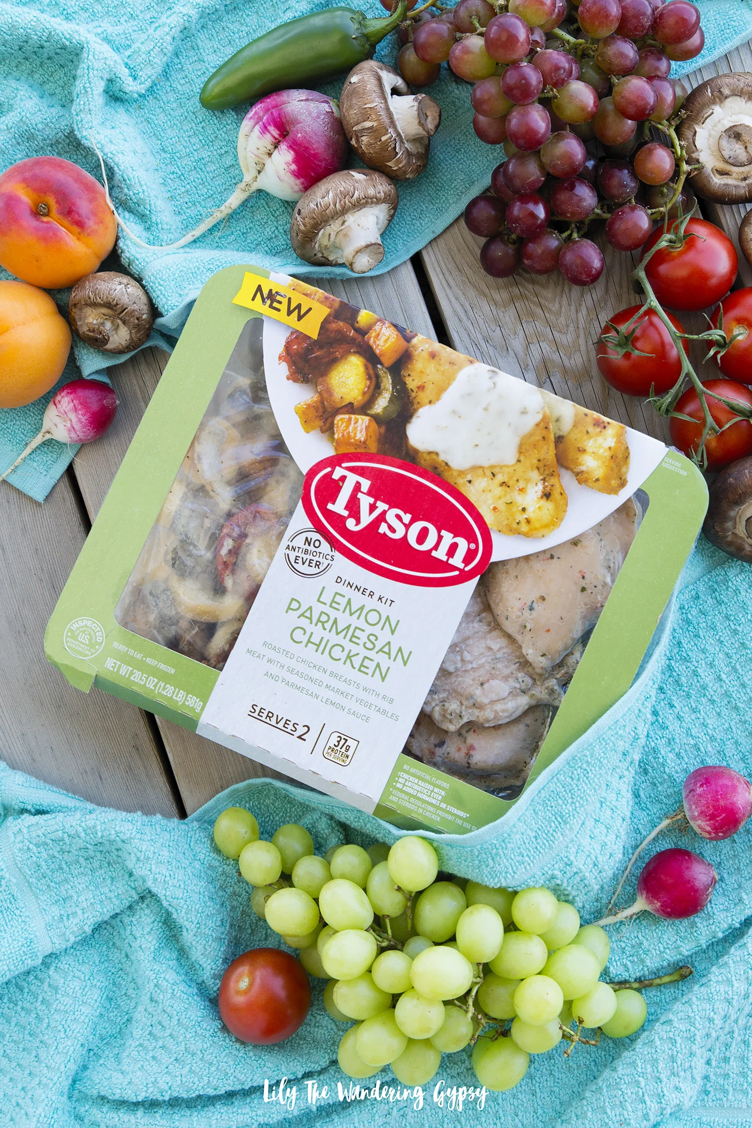 At Target, I chose the Tyson Dinner Kit - Lemon Parmesan Chicken, which I found in the freezer aisle near all the other Tyson chicken products. I also included a nice loaf of sourdough bread, and a large variety of veggies and fruits like grapes, apricots, and a few other items that were in season. Whatever we didn’t finish, we left for our friends to enjoy for lunches throughout the week.