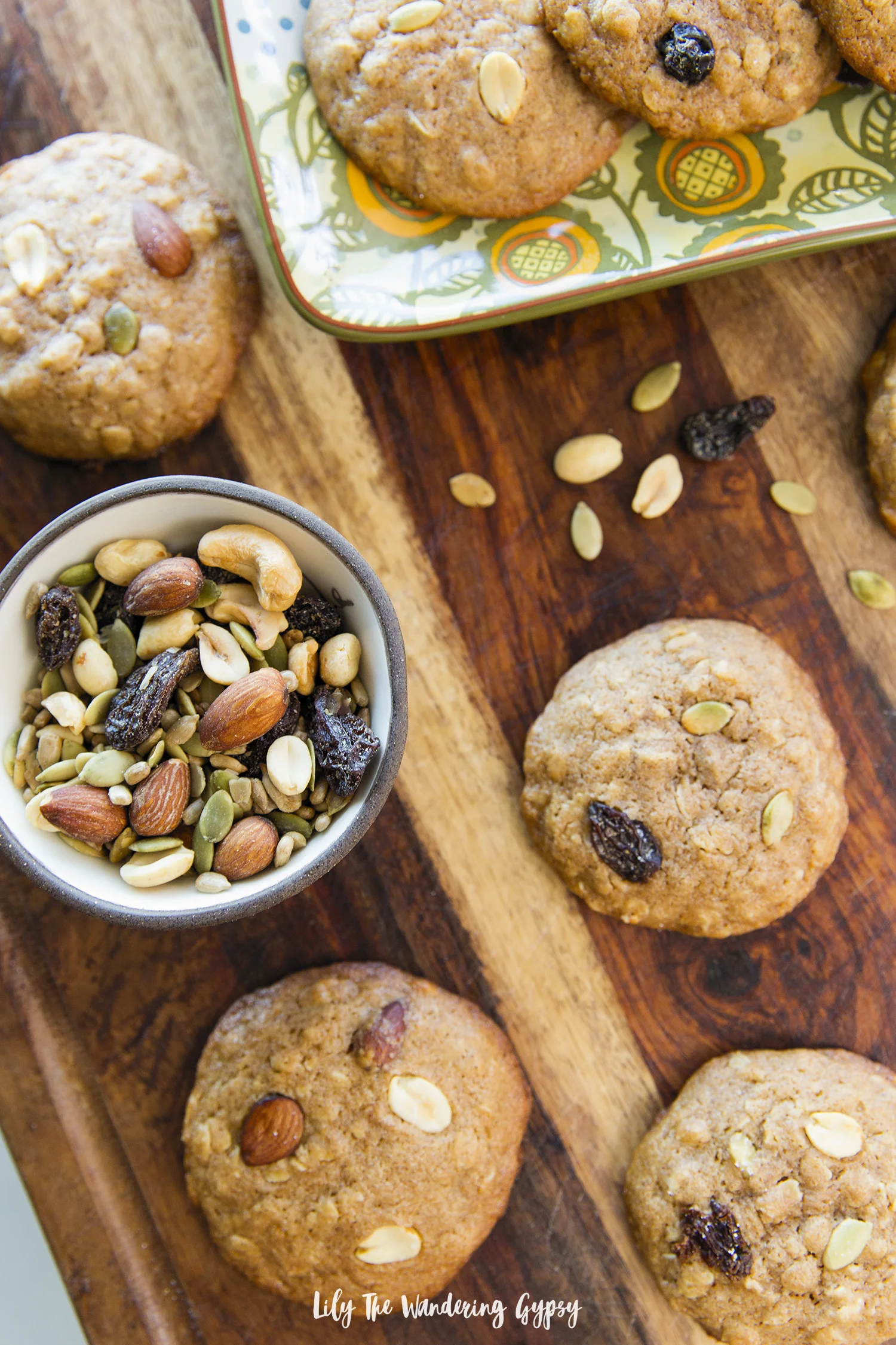 If you’re a fan of pepitas, sunflower seeds, and mixed nuts like cashews and peanuts, then you’ll LOVE these cookies. They also have a hint of cinnamon, lots of oats as well as a few other tasty ingredients. I am so excited to share this recipe with you! I hope you enjoy.