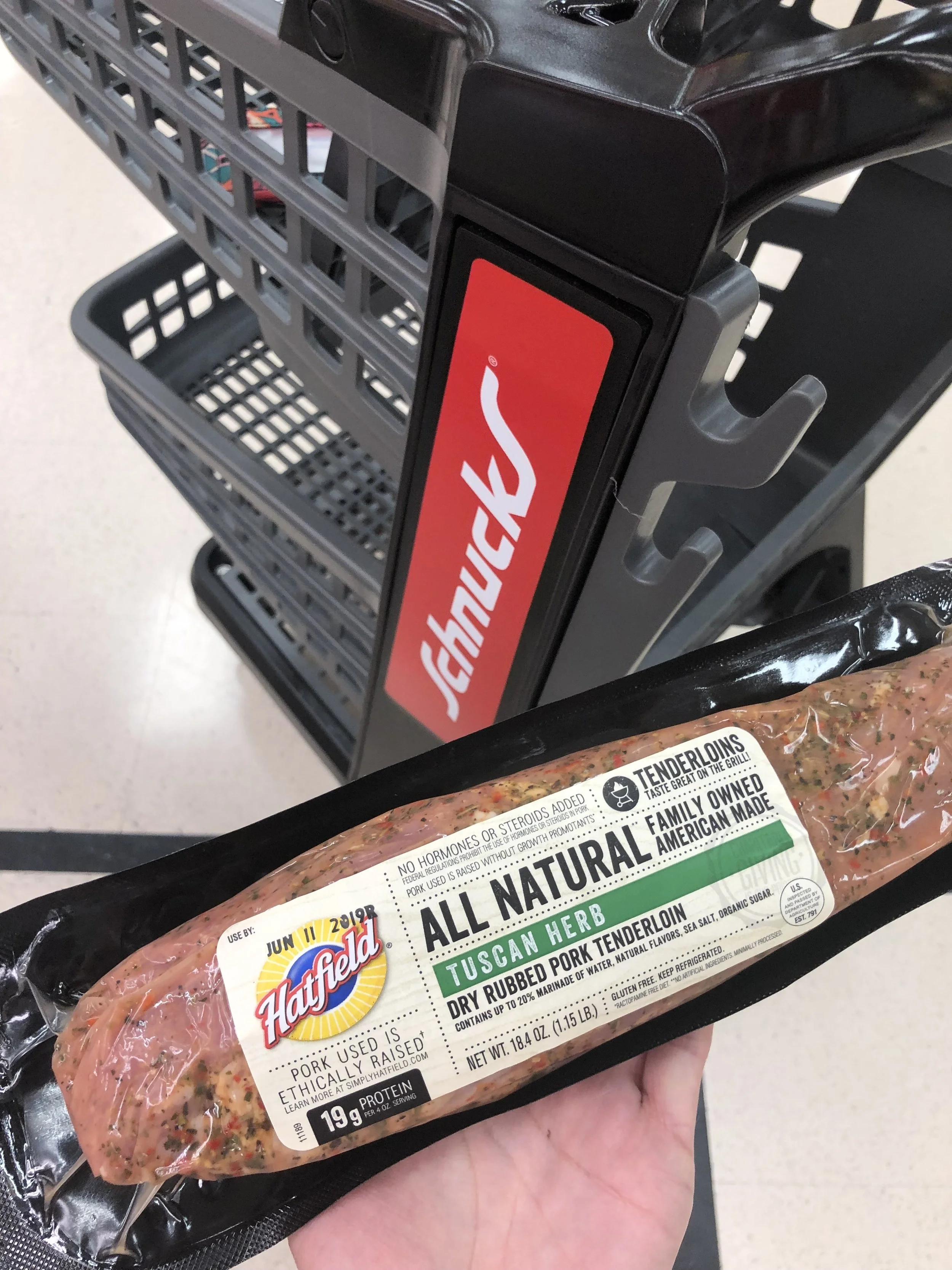 We recently headed to Schnuck’s Market here in Carbondale to shop for our Hatfield® Dry Rubbed Marinated Tenderloin, as well as the grocery items on the list. Luckily, this meal only took 3 main ingredients, so shopping was fast and easy.