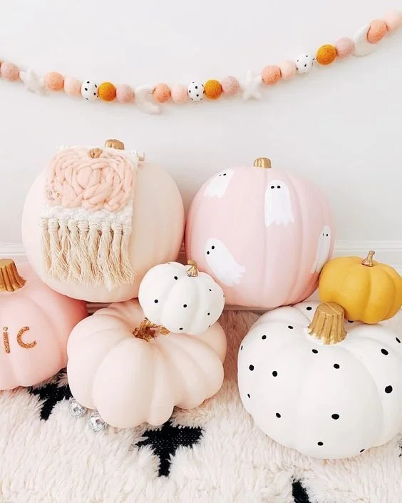 Paint pumpkins in pastel pinks and polka dots! Found via SlowMoon.