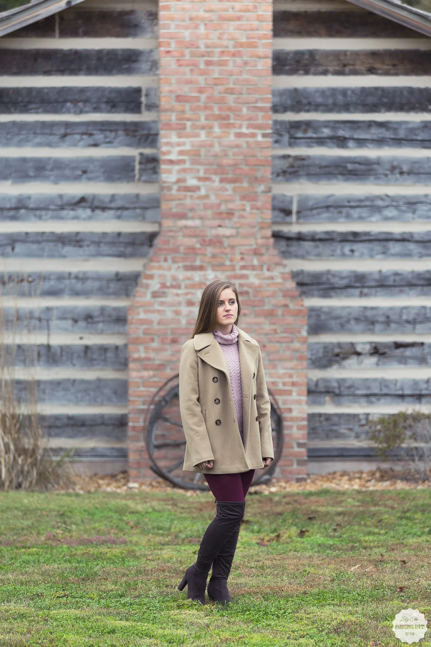 This time, I paired these awesome boots with an outfit I want to wear again and again! A beautiful, tan jacket, maroon skinnies with lots of stitching details, and a pale pink turtleneck sweater (with those fun shoulder cutouts). I would be SO warm in this outfit, it would definitely fight off the chill really well.