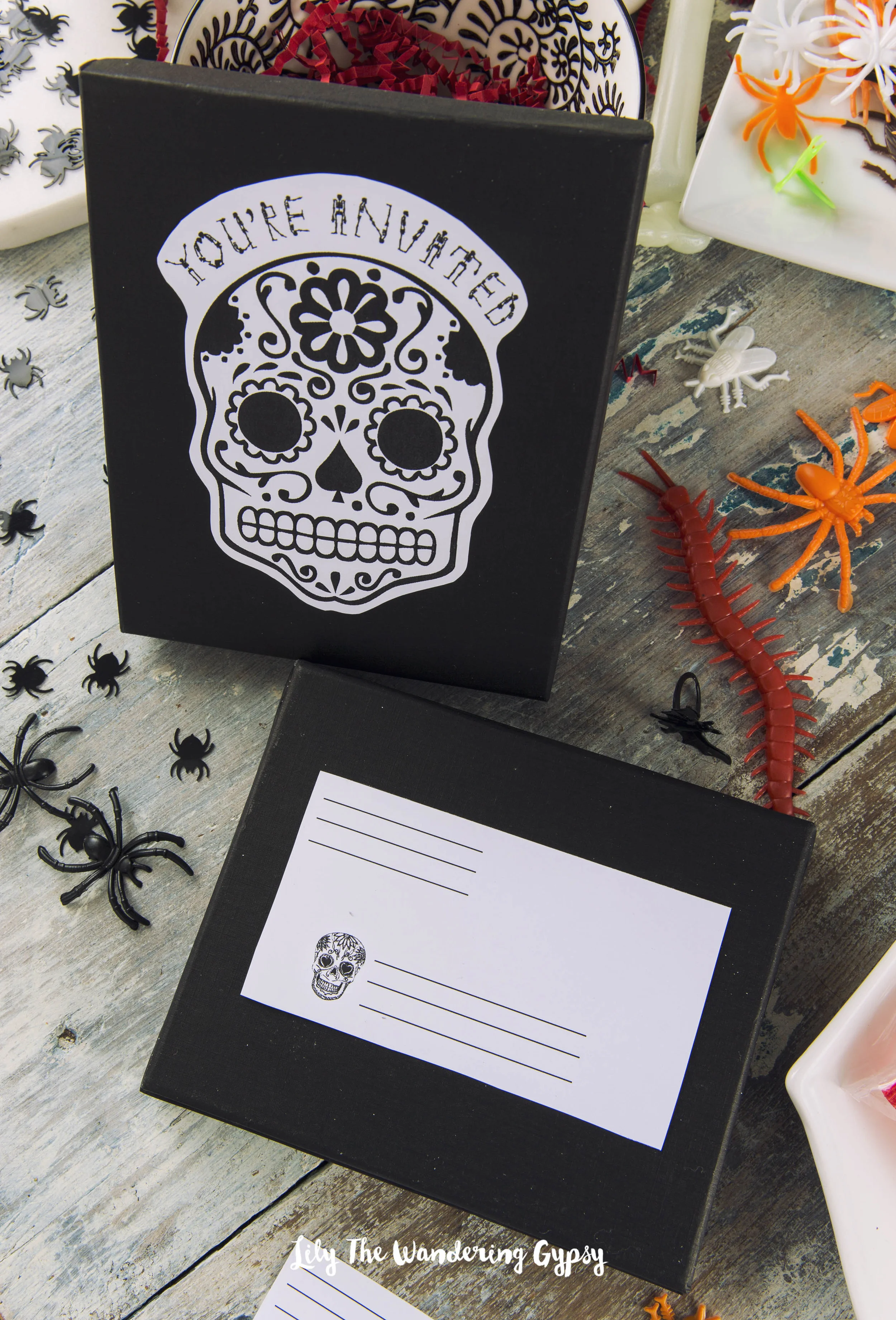 I really love how these adorable invites turned out! I love the fact that you can fill these gift boxes with spooky treats, and include the invite in a really unique way! I included two printables,