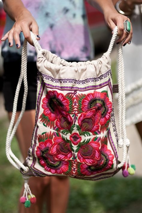 Pile on the bracelets, long necklaces, ankle bracelets, rings, flower crowns, headbands, and metallic temporary tattoos. These types of accessories can really make an ordinary outfit jump into the boho realm in no time! Also a little body paint may be fun if you are talented with a brush. Make sure you don't get any crazy tan lines/marks though :) A backpack purse or a bag with a  long strap is also great, so your hands can stay free while dancing your heart out!