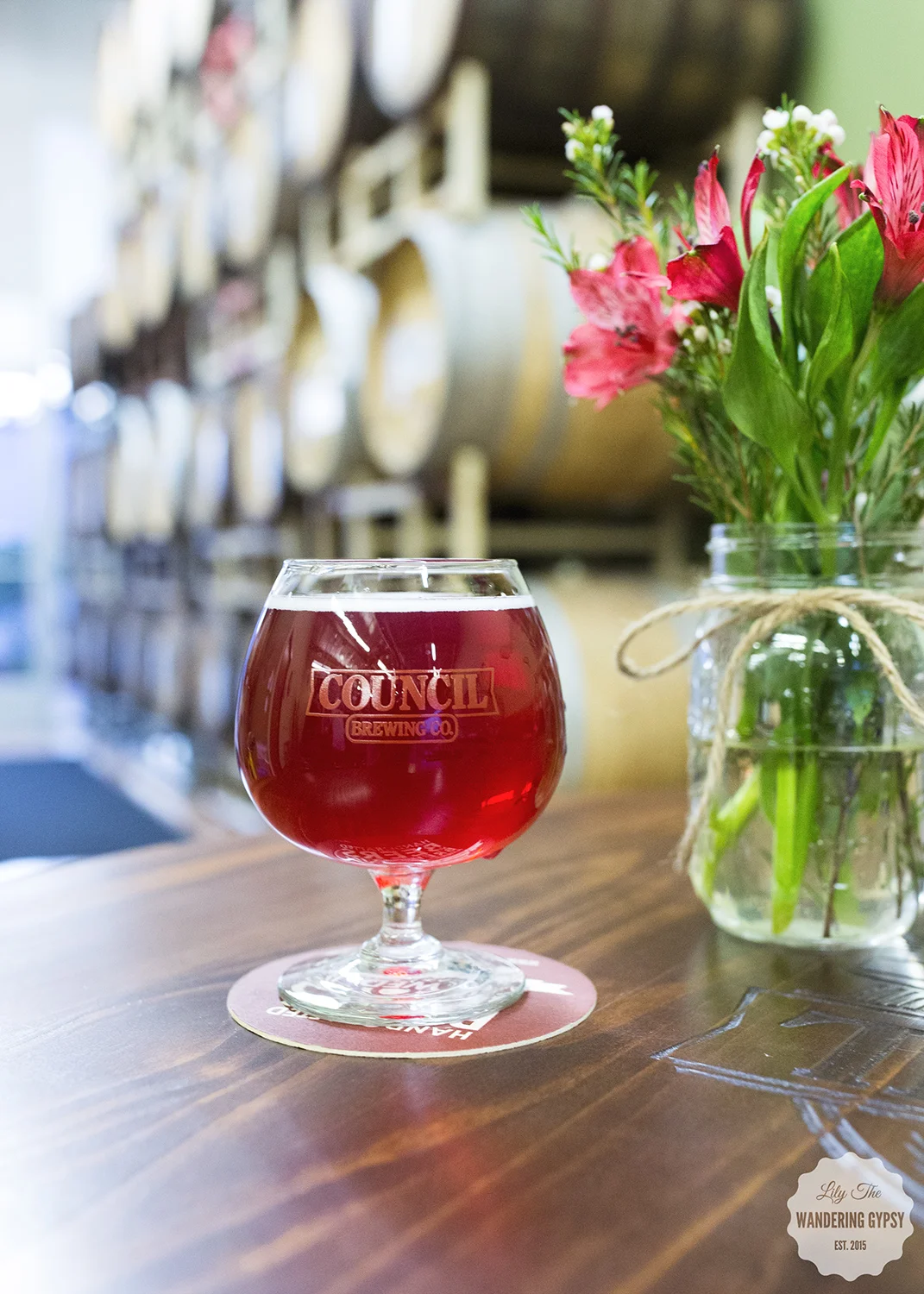 Council Brewing greeted us with a gigantic wall of barrels - a very good sign, meaning they take lots of time to age their beers, as well as make lots of sour beers (yum)!!