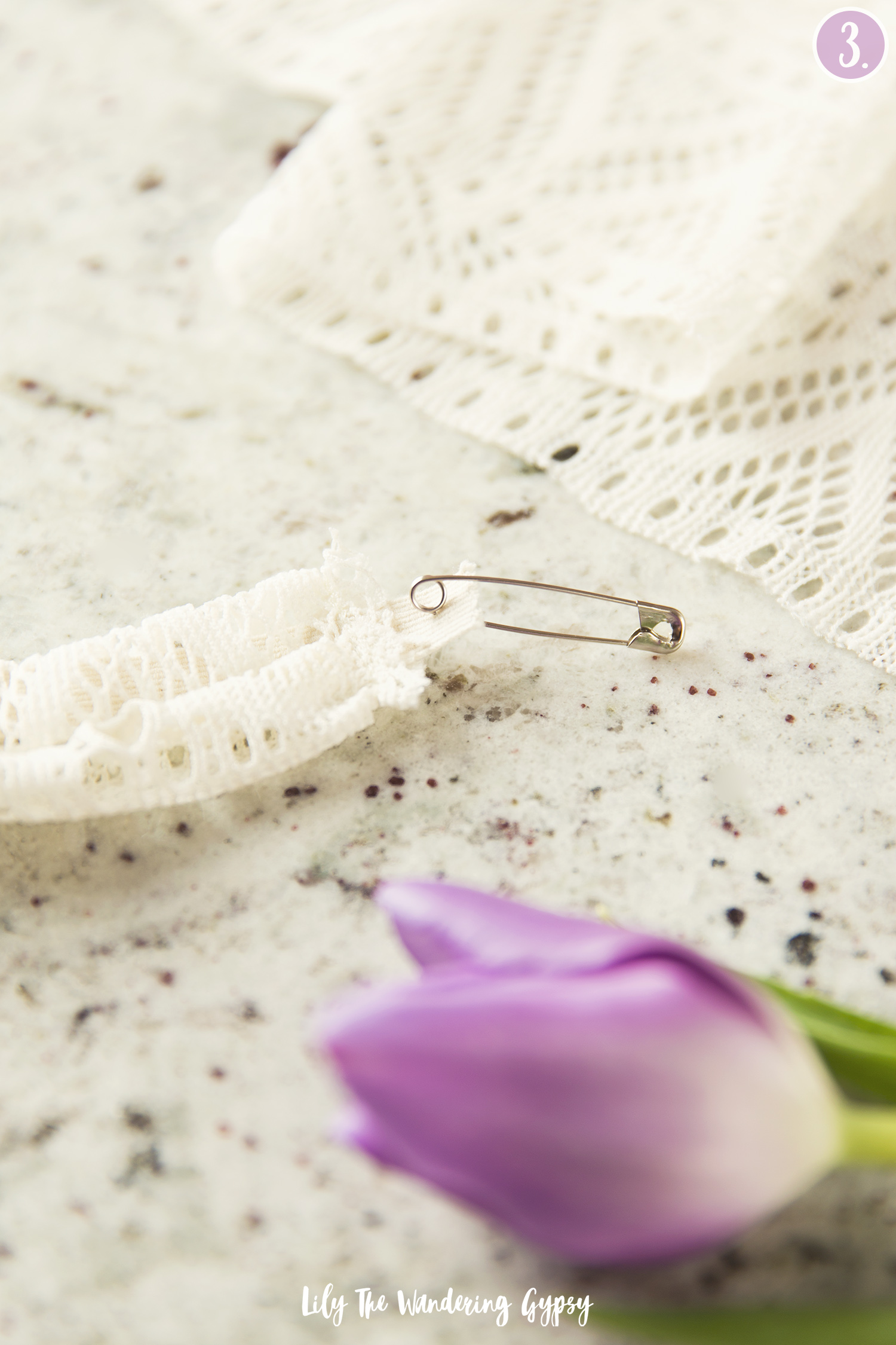 3.) Attach a large safety pin to one end of your elastic, and pull it through the tube you just created. Line the ends of the tube and the elastic up, and sew them together. Next, pull the safety pin all the way through, so the whole safety pin is out of the tubs. This will scrunch the tube a bit. While holding onto the safety pin for resistance, sew the other end of the elastic into the tube (sew across a few times so it's safe). Cut excess elastic and safety pin away and you have a scrunchy tube!