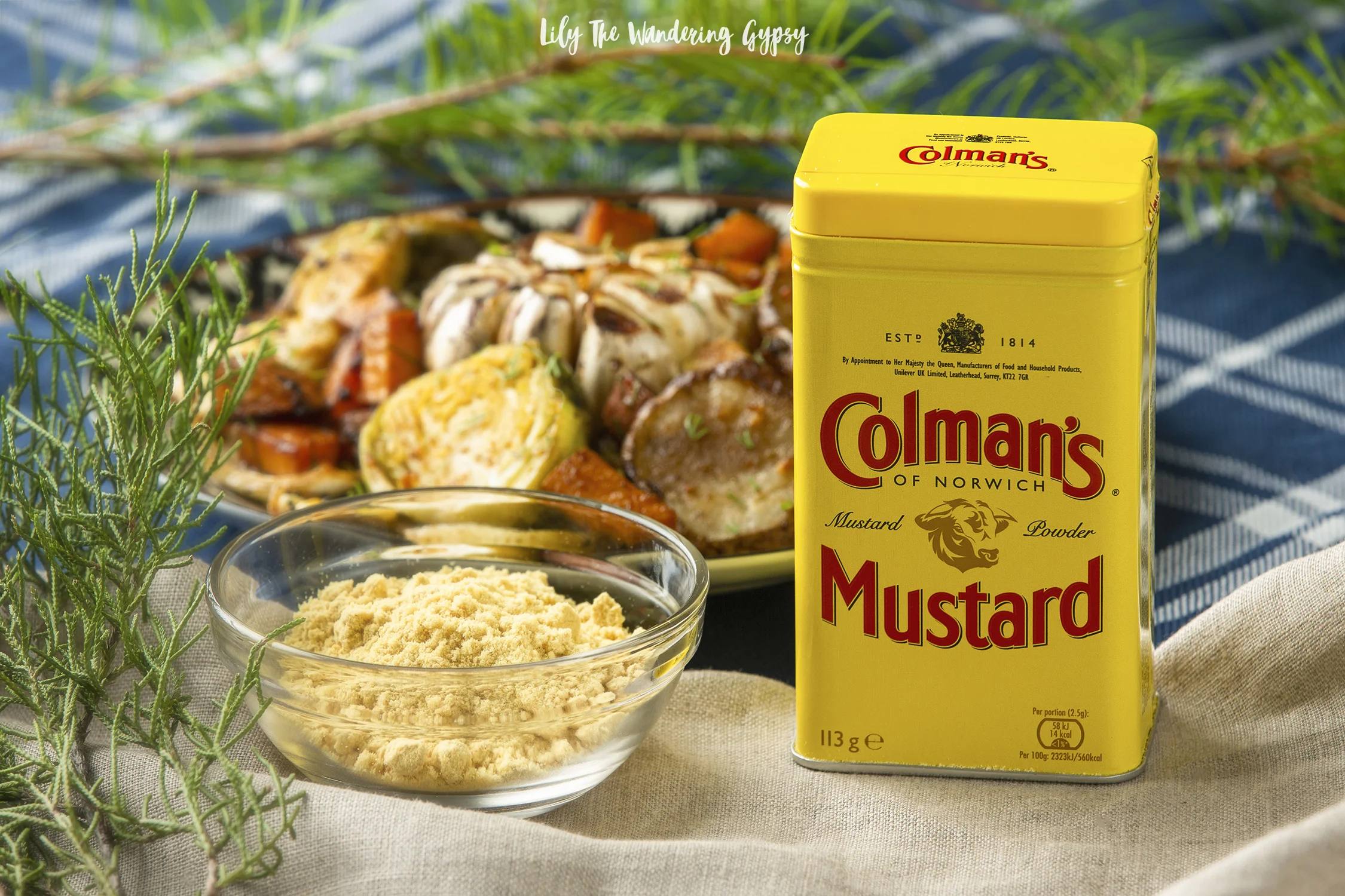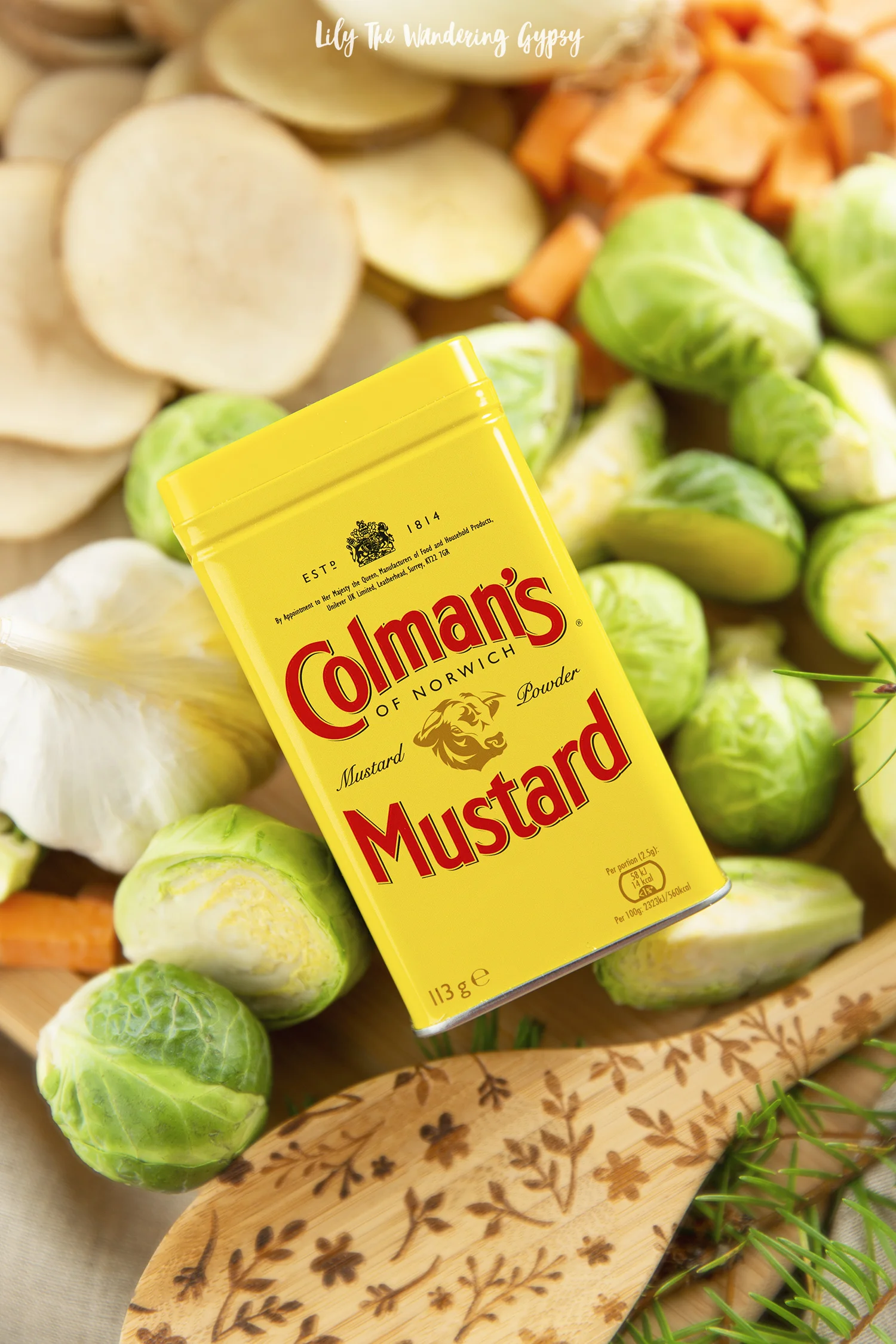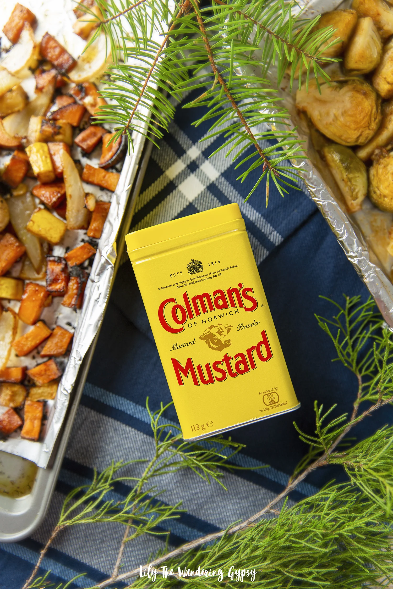 A delicious and health-forward vegan recipe that makes eating your vegetables easy AND delicious. Colman’s Mustard Glazed Brussels Sprouts and Roasted Vegetables make an amazing holiday side dish, snack, or even dinner idea. Colman’s dry mustard does have some heat and spice to it, but it’s a very nice, subtle warming flavor which I just love.
