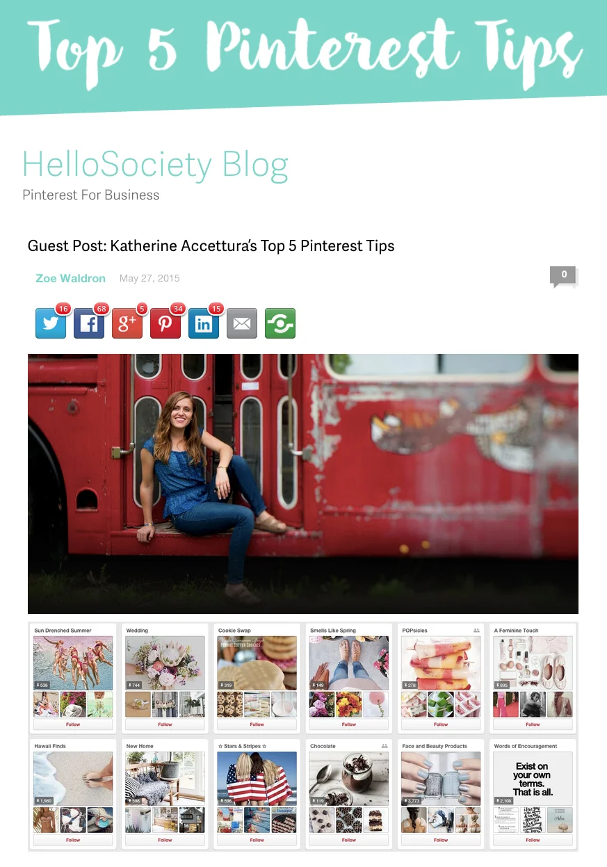 Katherine Accettura is a HelloSociety Influencer from Illinois. She has over 1.2 million Pinterest followers. Katherine has been kind enough to share some of her Pinterest tips with us in this post: