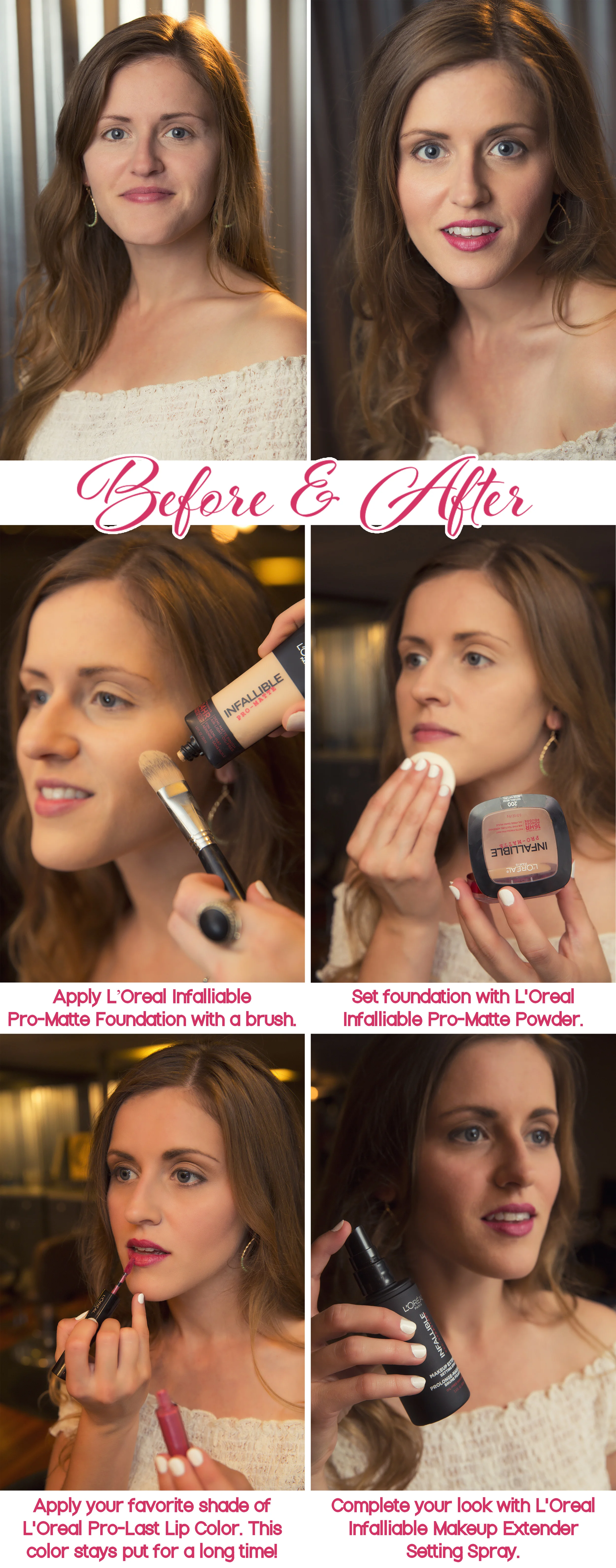 The tutorial (below), was created by using some of the L'Oreal Infalliable products like foundation, powder, and of course, their Lip Colors. There were so many colors to choose from, and this stuff really stays put! Below you can see some of the content we created for L'Oreal!