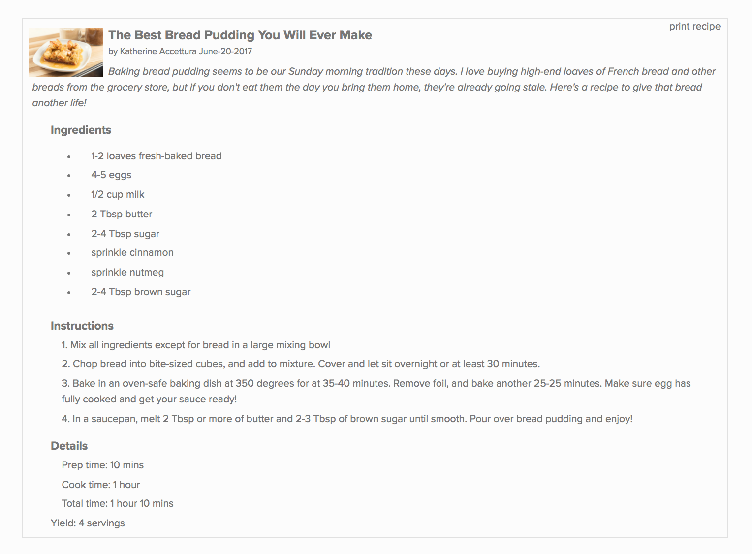 This amazing Bread Pudding recipe can be found here!