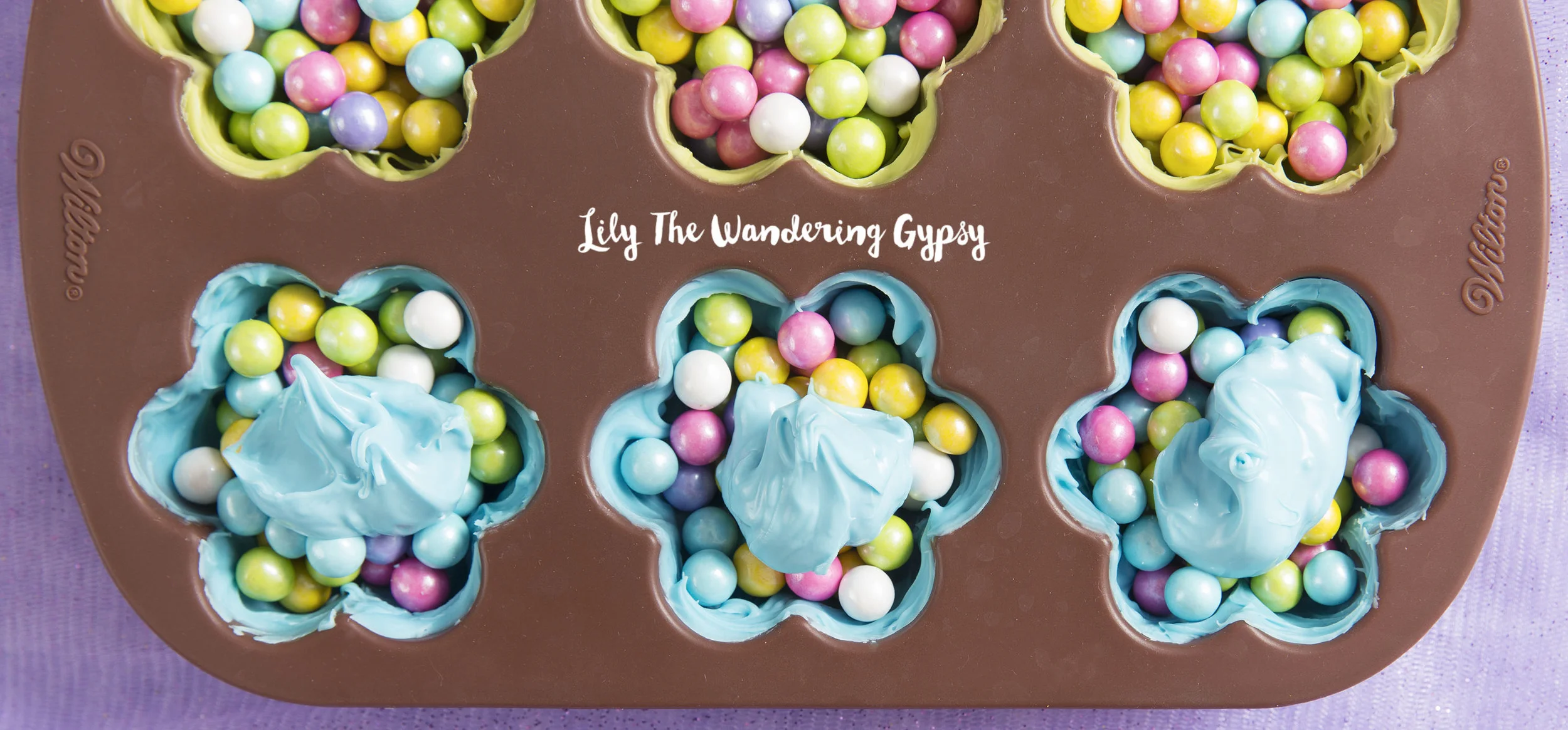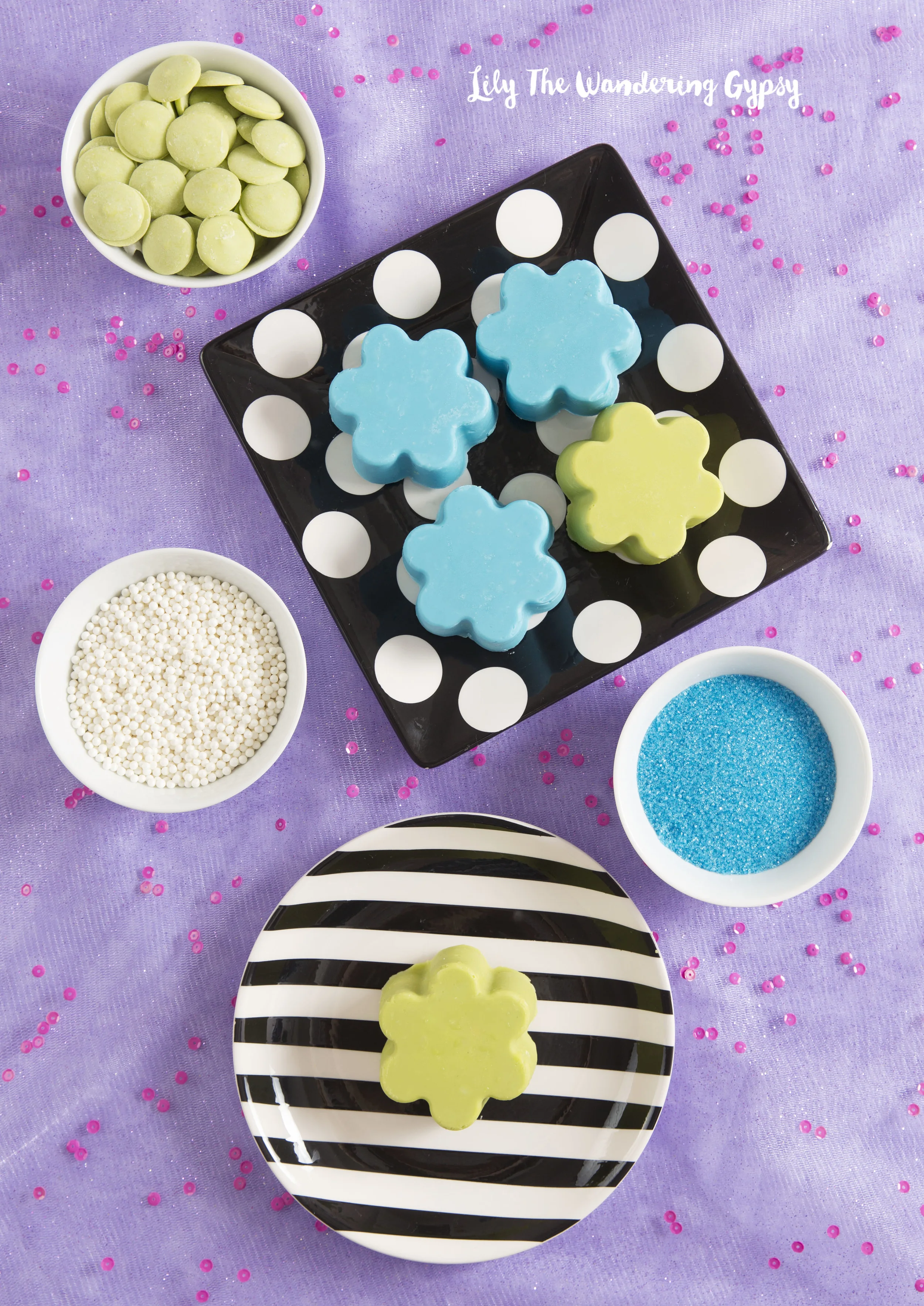 I had so much fun creating this project! I was inspired by summer, and all the pretty flowers that are blooming right now! For this recipe, I used silicone brownie molds, so I could fill them with tons of candy. I also used Blue and Vibrant Green Candy Melts. My filler candies were Sixlets, found here. See the list of ingredients below...and have FUN! You can make these in just about any color combo, for special events, holidays, and sporting events.