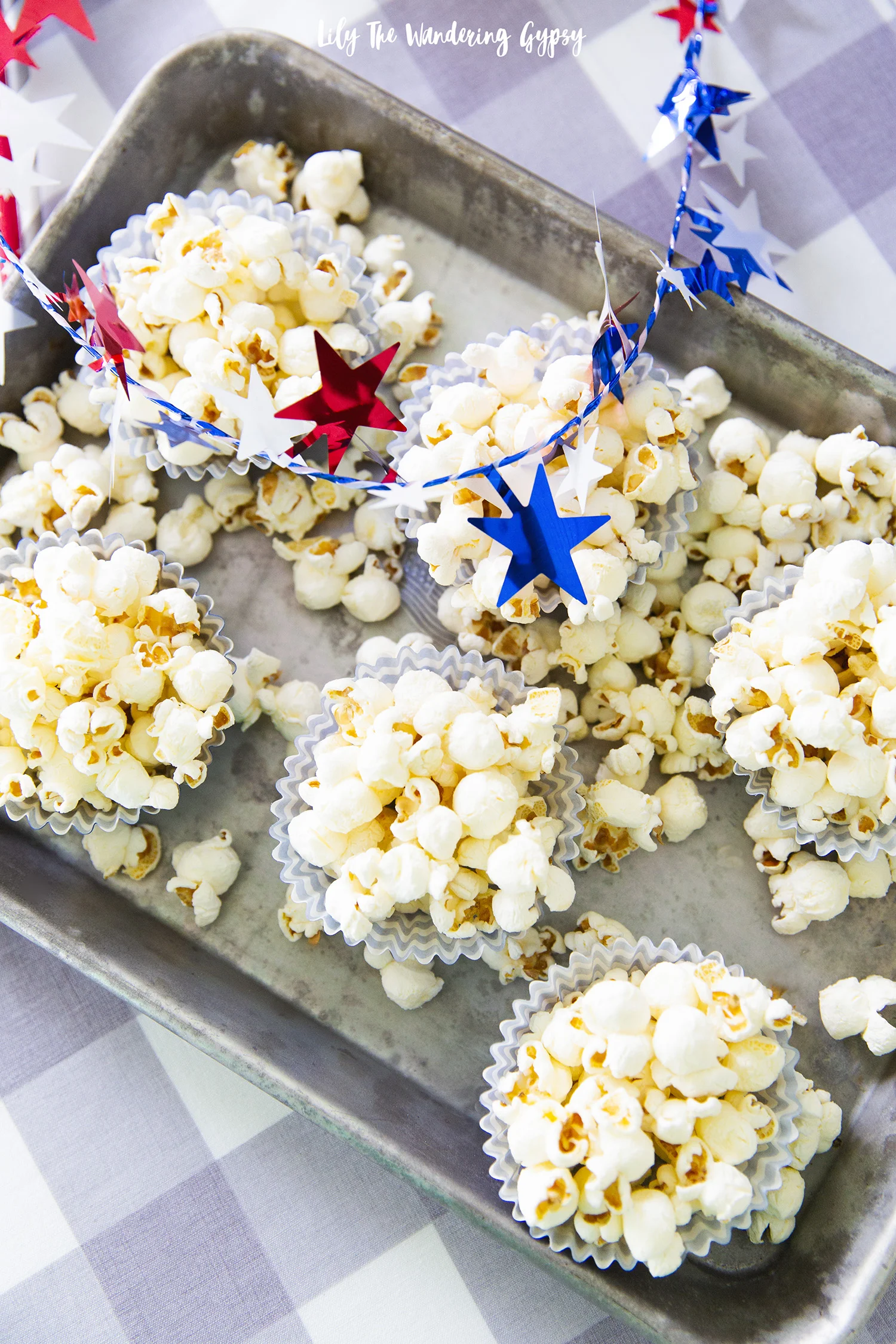 I also really love offering food to guests at different heights, bringing the food and refreshments to eye level. I stuck with more metallic accents like galvanized metal boxes, plus small metal buckets to hold utensils and festive paper napkins. I love the mixture of navy blue and red together, which worked perfectly for this theme.