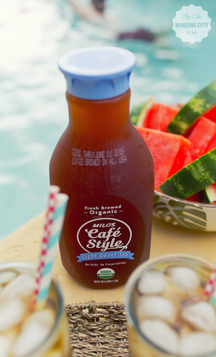 Summer is less than a month away, and we have been poolside in Florida for the last week or so. Don't get me wrong - we are here on a mission - it hasn't been all fun and games. We have been working very hard, helping family members pack up their house to move, which makes this little bit of relaxation and refreshments all the more well-deserved. Near the Tampa area, it has been over 90 degrees every day, and super high % humidity, so a nice glass of Milo's Café Style iced tea is something to really look forward to. It's literally been getting us through these hot days, and it's really good!