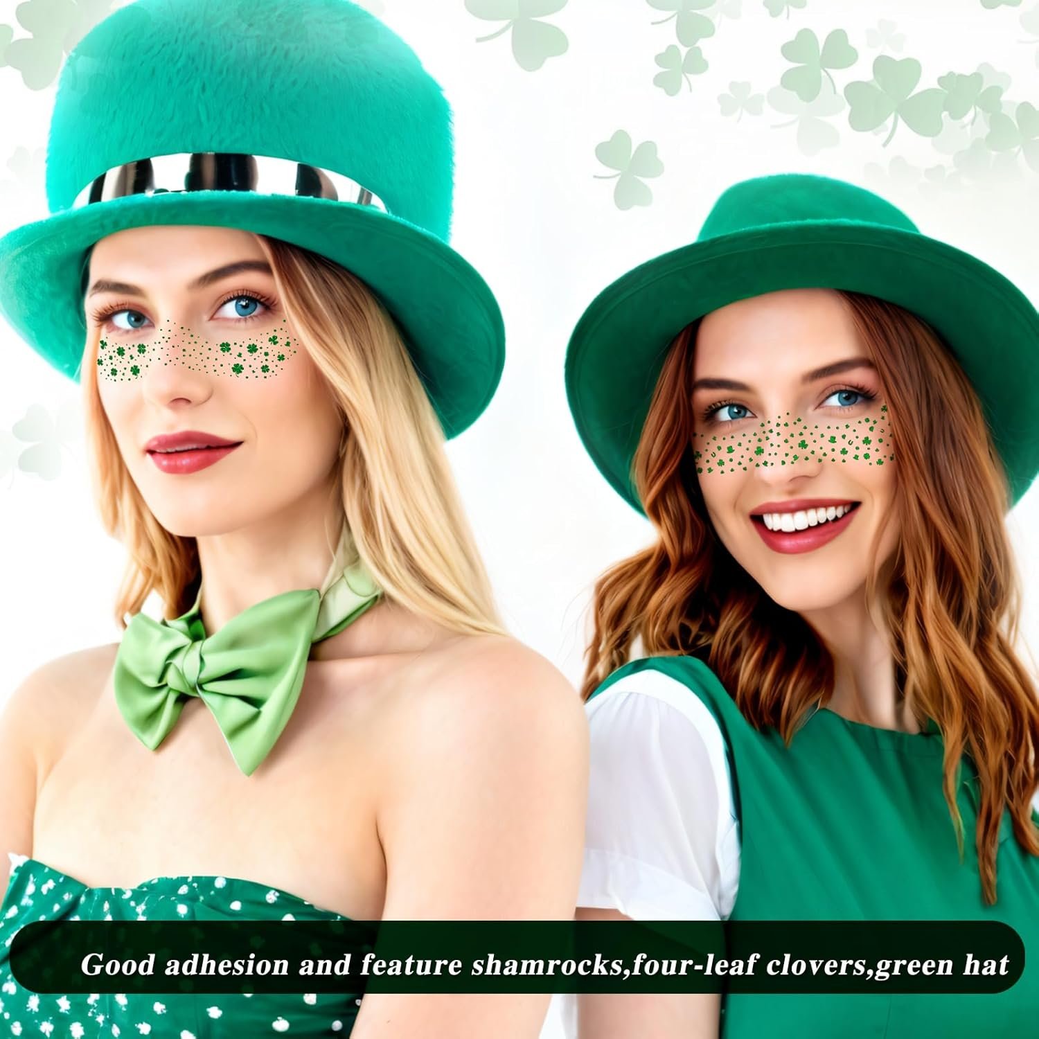 MEICOLY St Patricks Day Accessories,Leaf Face Sticker Costume,St Patricks Day Temporary Tattoos for Kids Women,Clover Shamrock Stickers,Green Makeup Tattoo,Green Freckles Face Tattoo, 6Pcs, 2 Styles. Find this adorable accessory on Amazon for only $7.99.