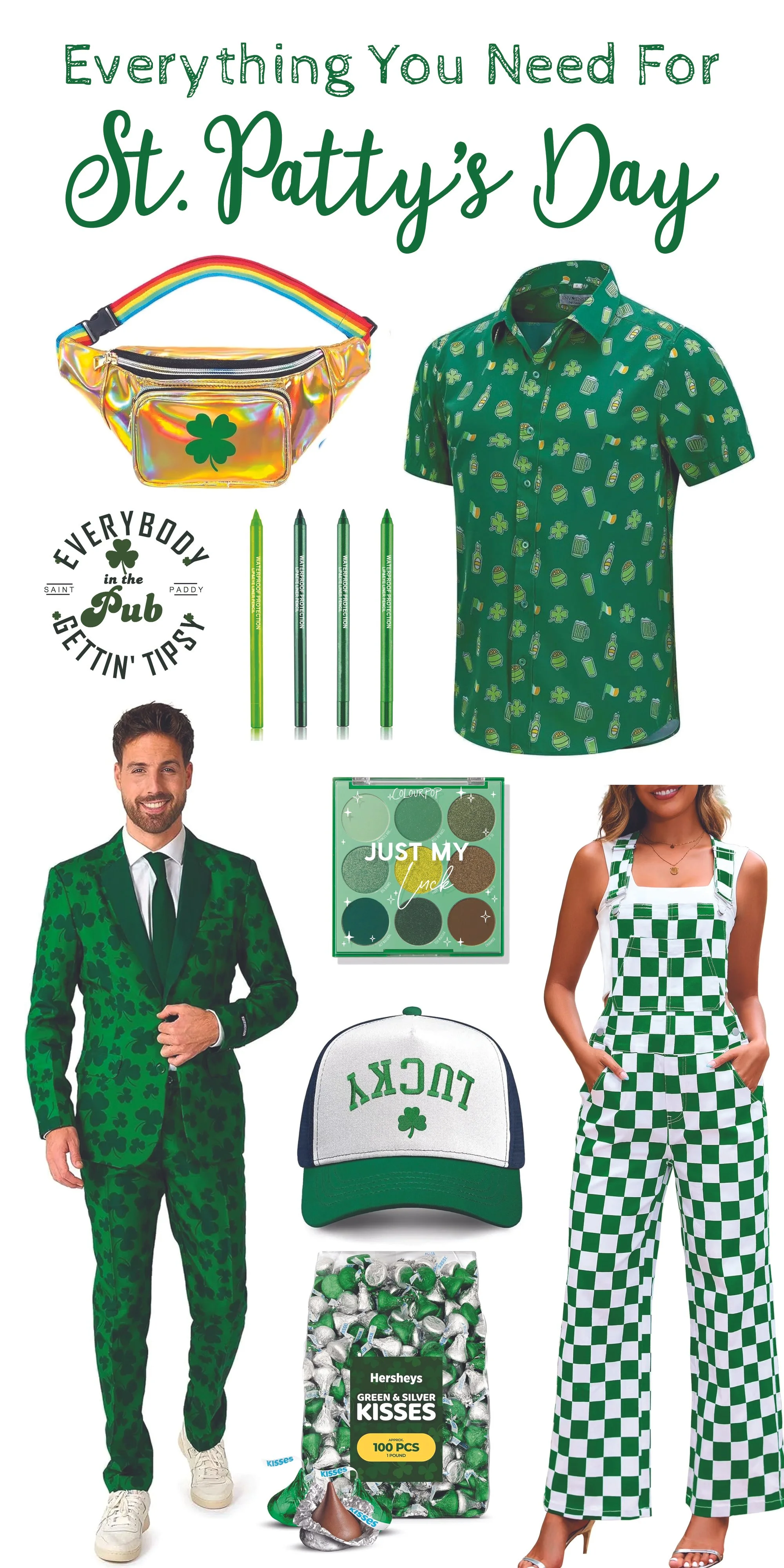 We have seen folks in these cute overalls at other events, and want a some for ourselves. Below, are some green and white, checkered overalls that would be so fun to sport on a sunny St. Patty’s Day!